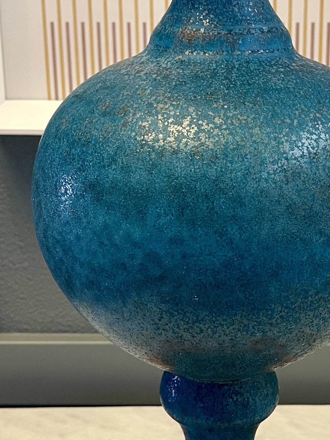 The predominant color is a rich, deep turquoise blue. Hints of metallic shimmer or glaze effects are visible, giving depth to the color.